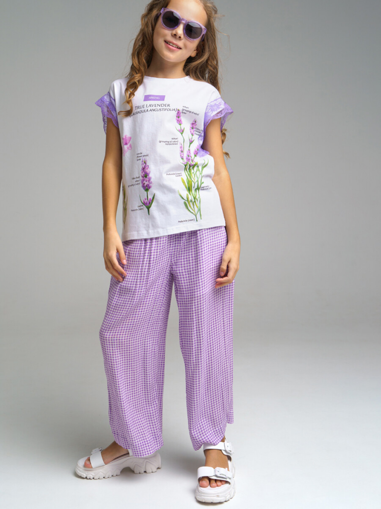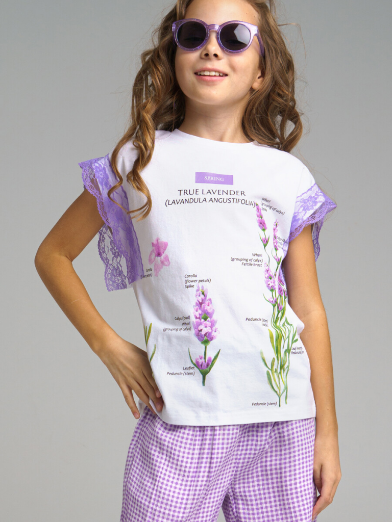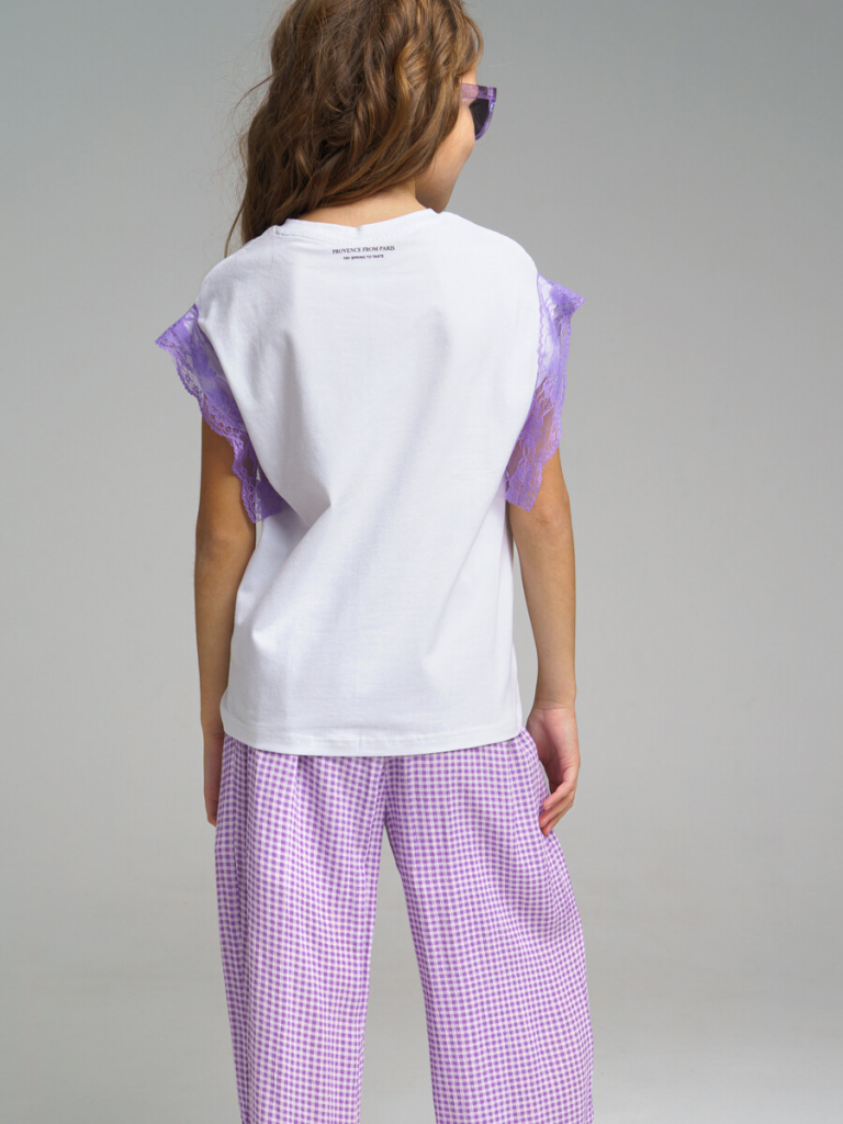 > Футболка для девочки белый,сиреневый