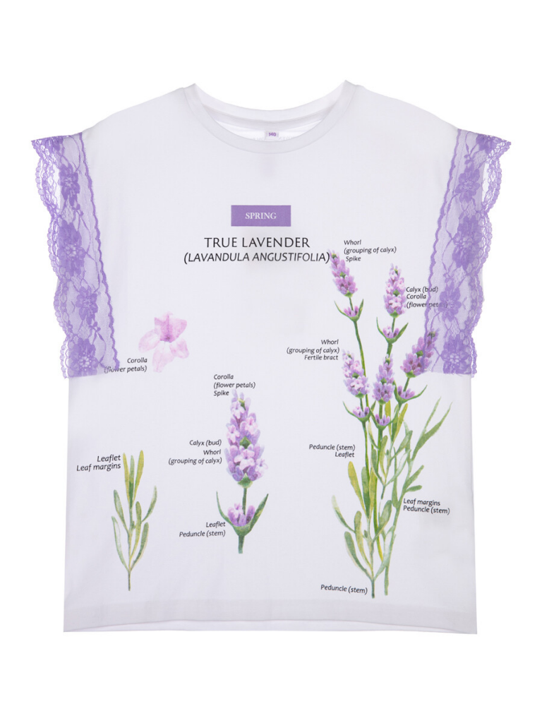Футболка со спущенными плечевыми швами из качественного и приятного на ощупь трикотажа джерси. Модель декорирована кружевом. Высокое содержание хлопка 95%. Благодаря наличию эластана в составе ткани, изделие проще в уходе и держит форму.