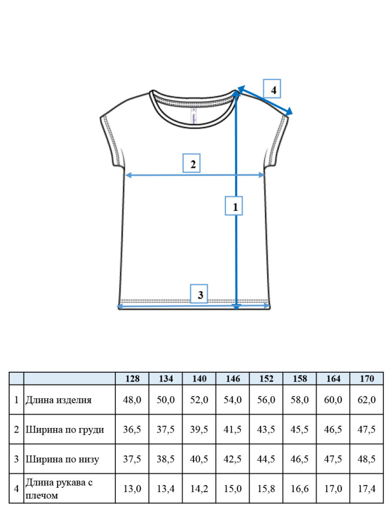 | Рост, см | 98 | 104 | 110 | 116 | 122 | 128 | 134 | 140 | 146 | 152 | 158 | 164 | 170 |