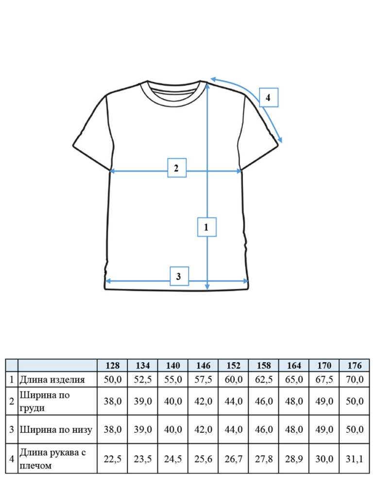 Футболка из качественного и приятного на ощупь трикотажа джерси. Высокое содержание хлопка 95%. Благодаря наличию эластана в составе ткани изделие проще в уходе и держит форму. Принт сохраняет первоначальный вид даже после многочисленных стирок.