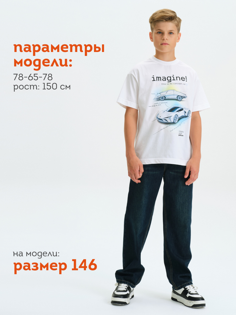 Футболка для мальчика прямого кроя маленького объема - это идеальный выбор для активного ребенка. Вырез горловины обработан эластичной тканью — она прекрасно держит форму, не растягивается, при этом ребёнку удобно надевать и снимать футболку. Футболка с фотопринтом, разработанным с помощью ИИ и надписями. Перевод надписей: Представте себе! Это мой концепт машины. Скетч надписи: Космический корабль, подходящий для космических путешествий. Гнать сквозь звёзды. Лучше, чем у кого-либо еще. Быстрее скорости света. Творите вместе с Пеликан. Спортивная футболка подходит как для подростков так и для малышей в детский сад. Подходит для любого времени года.