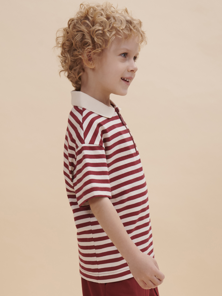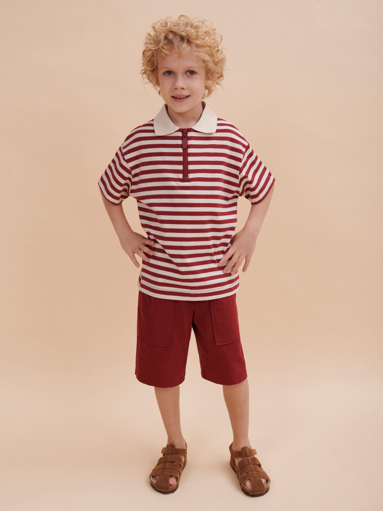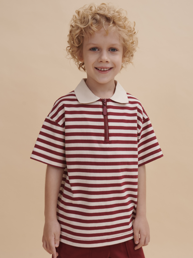 Футболка поло для мальчика – модель умеренного объема на каждый день, для дома и прогулок. Базовая футболка на любой сезон. Изделие сшито из 100% натурального хлопка. Футболка детская для мальчика из мягкого материала приятно прилегает к телу, не вызывая дискомфортных ощущений во время движений. Хлопок хорошо пропускает воздух, обеспечивает гигроскопичность. Материал не задерживает влагу - ребенок не потеет. Детская футболка поло с коротким рукавом на застежке молнии по переду. Воротник из тонкого декоративного риба. Силуэт поло умеренный оверсайз. Футболка поло для мальчика не линяет после стирки потому что имеет вывязанную полоску, не принт. Сохраняет красивый внешний вид даже при долгой носке. Футболка для мальчика прослужит долго и будет радовать износостойкостью. Модель представлена в двух расцветках: темно-синем цвете в бежевую полоску и бордовом в бежевую полоску. Красивый вариант на любой выход. Изделие привлекает интересным, морским дизайном. Футболка поло для мальчика подростковая рассчитана на возраст садика и школы. Размерная линейка: 1 (86): 2 (92): 3 (98): 4 (104): 5 (110): 6 (116): 7 (122): 8 (128): 9 (134): 10 (140): 11 (146). Крутая футболка поло для мальчика – отличный подарок для сына, внука, братика, племянника, крестника! Выбирайте нужный размер по таблице размеров на фото. Цвет товара на экране вашего устройства может отличаться от цвета изделия вживую.