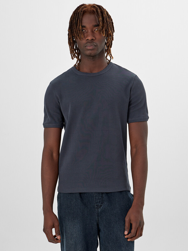 Короткие рукава и аккуратная округлая горловина создают лаконичный силуэт. Все края изделия, включая горловину и низ рукавов, обработаны особым способом, чтобы швы не растягивались со временем.