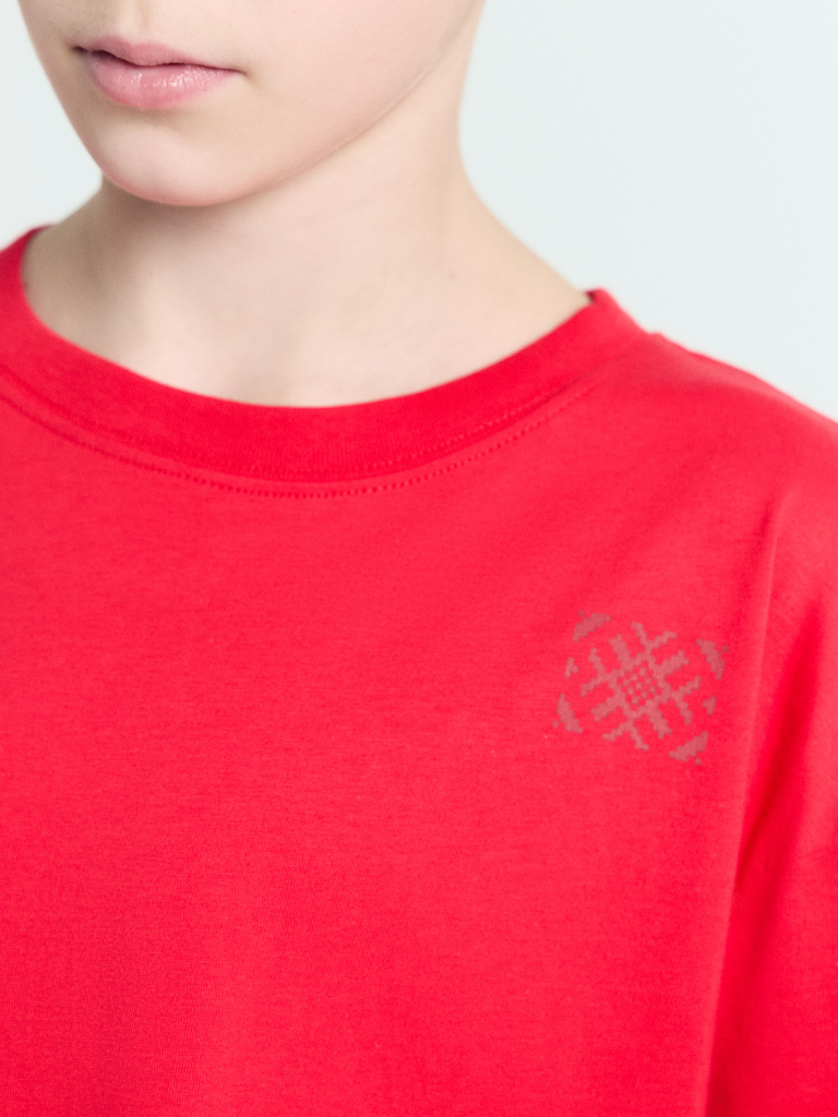 Новинка из коллекции "Славянские орнаменты" — детская футболка для мальчиков из 100% хлопка. Спущенная линия плеча, свободный прямой силуэт, горловина круглая. Мягкая и эластичная, не сковывает движения, комфортная в носке. Подойдет для детского сада, активных игр, прогулок и путешествий. Орнаменты этой футболки символизируют весну, молодость, есть также особый знак-оберег - символ ребенка. Носить одежду с таким орнаментом - значит быть связанным с традициями и наследием своего народа. Отличныйвариант для создания оригинальных образов. Дополнить можно стильным низом в тон из этой же капсулы.