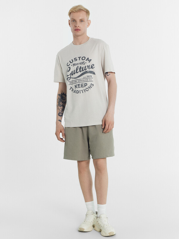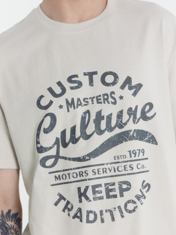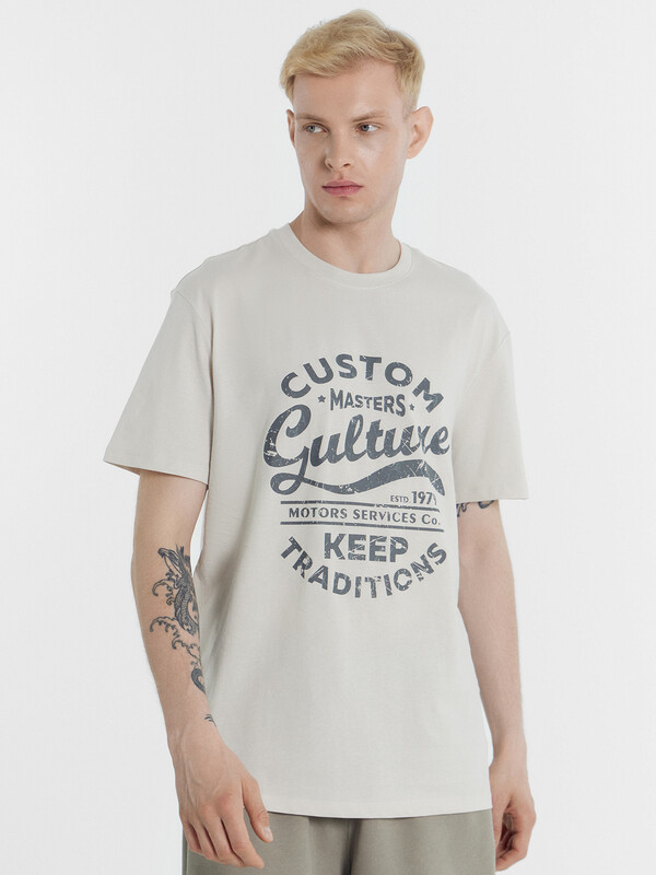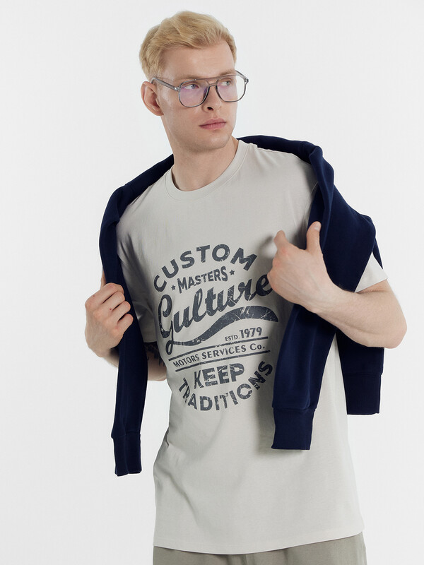 Футболка мужская с печатью в виде надписи "Custom masters culture" из 100% хлопка. Натуральный материал гарантирует невероятный комфорт в повседневной жизни. Прямой свободный силуэт и длина до середины бедер делают эту модель универсальной для любого типа мужской фигуры. Круглый вырез горловины, короткие рукава и спущенная линия плеча позволяет двигаться свободно, не стесняет движения. Но, главное достоинство этой футболки — уникальный дизайн, который никого не оставит равнодушным. Широкий размерный ряд. Рекомендуем!