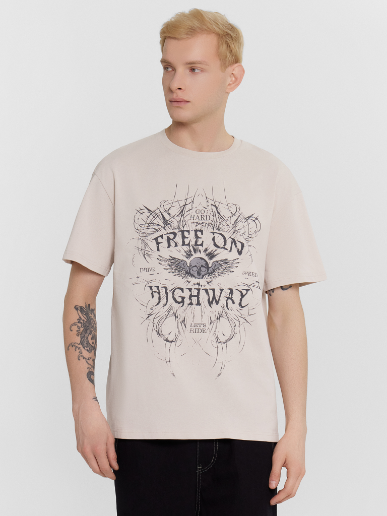 Стильная мужская футболка станет идеальным дополнением к вашему гардеробу для создания расслабленных образов на любой случай. Модель выполнена в прямом свободном крое, что обеспечивает максимальный комфорт и свободу движений. Круглая горловина придает футболке классический вид, который легко сочетается с различными стилями одежды. Короткие рукава и слегка спущенная линия плеча добавляют изделию современный и непринужденный вид. Изготовленная из высококачественной хлопковой кулирки, футболка обладает отличными воздухопроницаемыми и гипоаллергенными свойствами, что делает ее идеальным выбором для любого сезона. Независимо от того, собираетесь ли вы на прогулку, встречу с друзьями или просто на отдых, эта футболка всегда будет выглядеть стильно.
