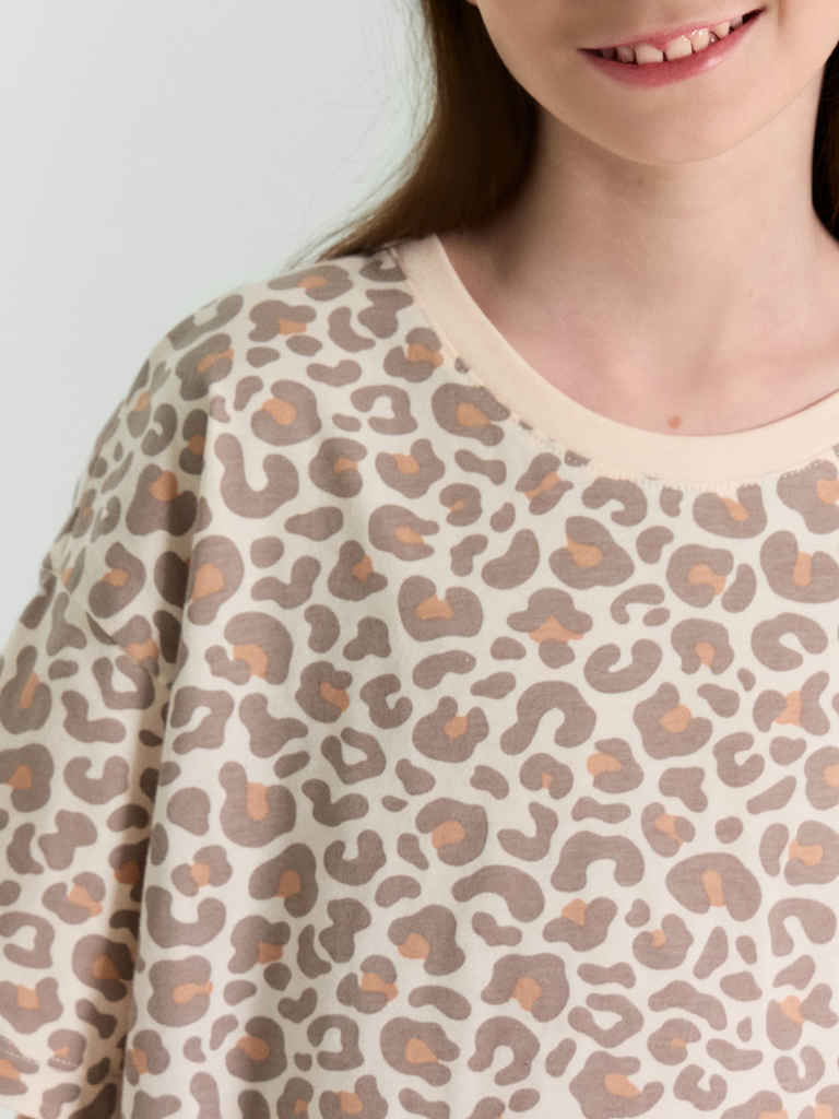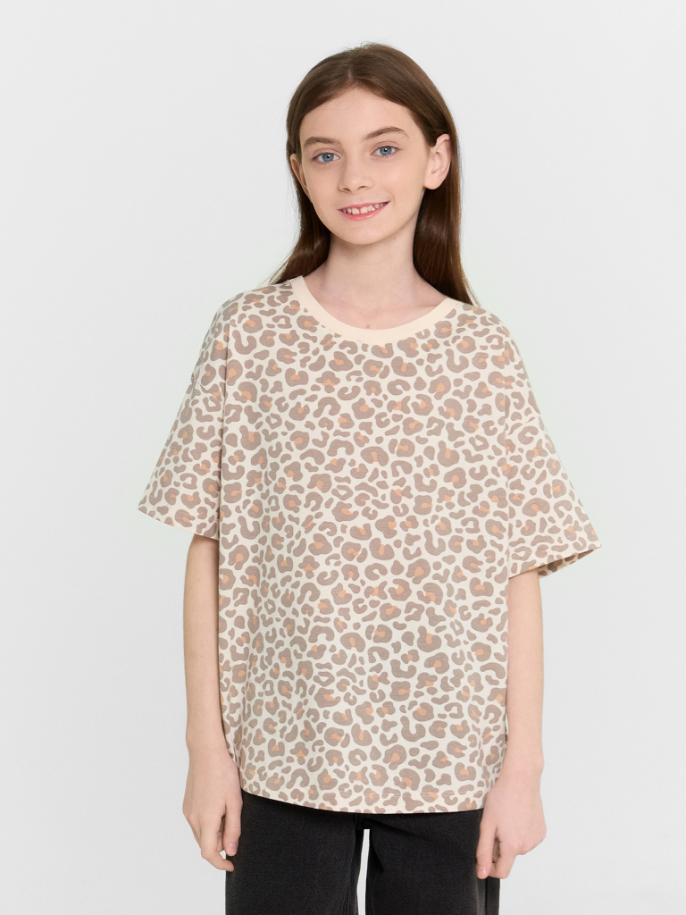 Футболка для девочки выполнена из мягкой и приятной кулирки, обеспечивая комфорт и легкость при носке. Силуэт свободный, позволяя вашей девочке двигаться свободно и комфортно. Длина до середины бедра делает эту модель идеальной для любых активностей. Короткие рукава и круглая горловина придают футболке стильный и современный вид. Эта футболка станет отличным дополнением к гардеробу вашей девочки, даря ей комфорт и стиль каждый день!