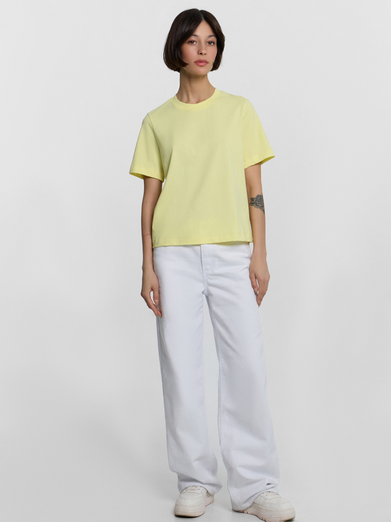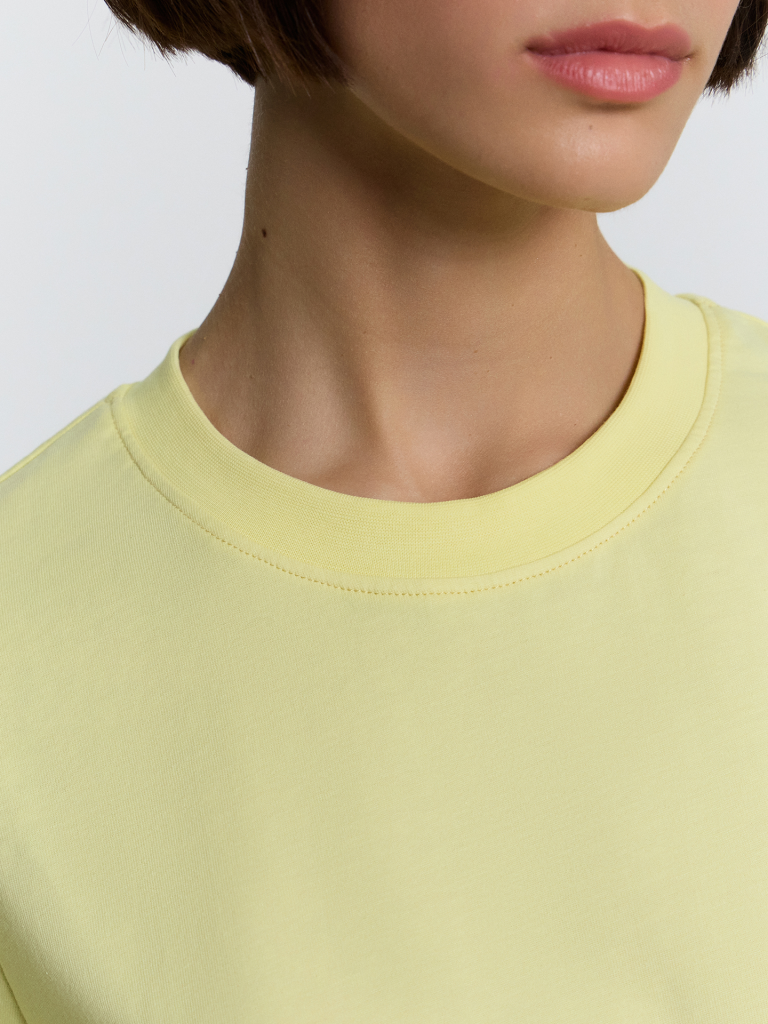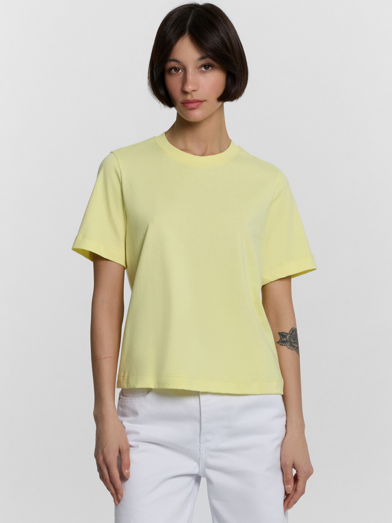 Стильная женская футболка из натурального хлопка станет отличным дополнением вашего гардероба. Легкий и натуральный материал хорошо пропускает воздух, слегка тянется и не стесняет движений, обеспечивая комфорт на весь день. Круглый вырез и спущенная линия плеча с углубленной проймой гарантируют свободу движений, а широкие рукава чуть выше локтя добавляют стильности и удобства. Эта классическая оверсайз футболка – базовый элемент гардероба, который можно комбинировать с чем угодно. Она идеально подходит для отдыха, прогулок и занятий спортом. Однотонный цвет позволяет легко сочетать её с множеством других вещей. Порадуйте себя и своих близких практичными подарками от Mark Formelle!