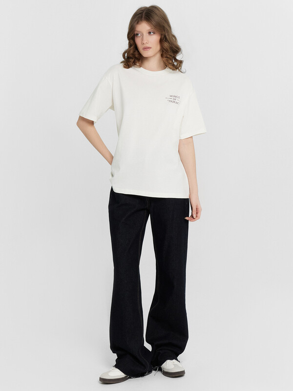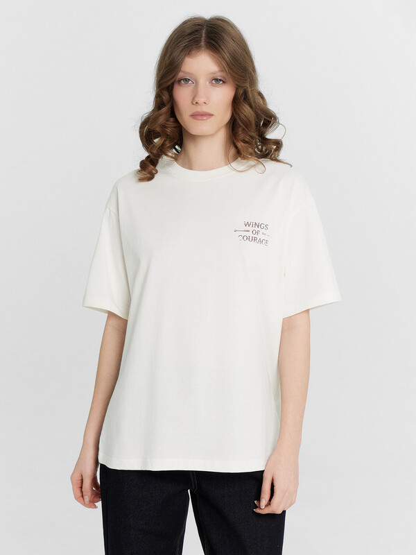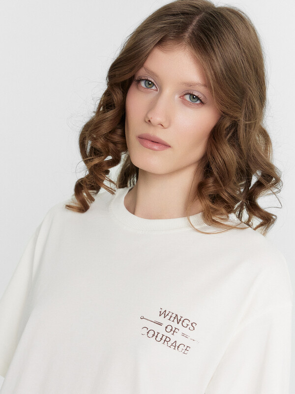 Женская футболка свободного силуэта - это прекрасный выбор для создания стильного и комфортного образа. Модель выполнена из нежной хлопковой кулирки, гарантирующей мягкость и отличную воздухопроницаемость. Круглый вырез и спущенная линия плеча обеспечивают свободу движений, а широкие рукава, чуть выше локтя, добавляют легкости и непринужденности. Эта стильная футболка станет базовым элементом вашего гардероба, идеально сочетающимся с различными нарядами и подходящим для любого случая.