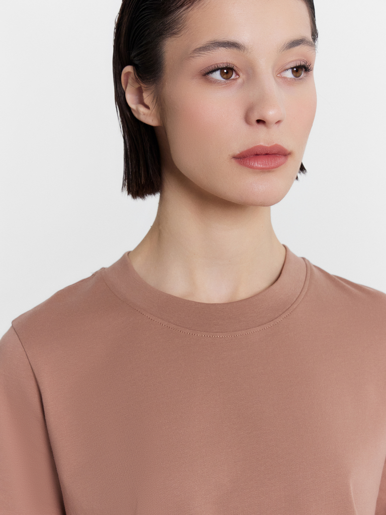 Стильная женская футболка из натурального хлопка станет отличным дополнением вашего гардероба. Легкий и натуральный материал хорошо пропускает воздух, слегка тянется и не стесняет движений, обеспечивая комфорт на весь день. Круглый вырез и спущенная линия плеча с углубленной проймой гарантируют свободу движений, а широкие рукава чуть выше локтя добавляют стильности и удобства. Эта классическая оверсайз футболка – базовый элемент гардероба, который можно комбинировать с чем угодно. Она идеально подходит для отдыха, прогулок и занятий спортом. Однотонный цвет позволяет легко сочетать её с множеством других вещей. Порадуйте себя и своих близких практичными подарками от Mark Formelle!