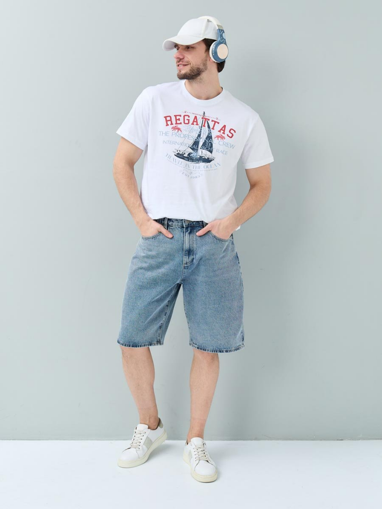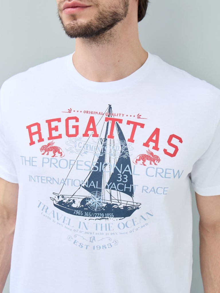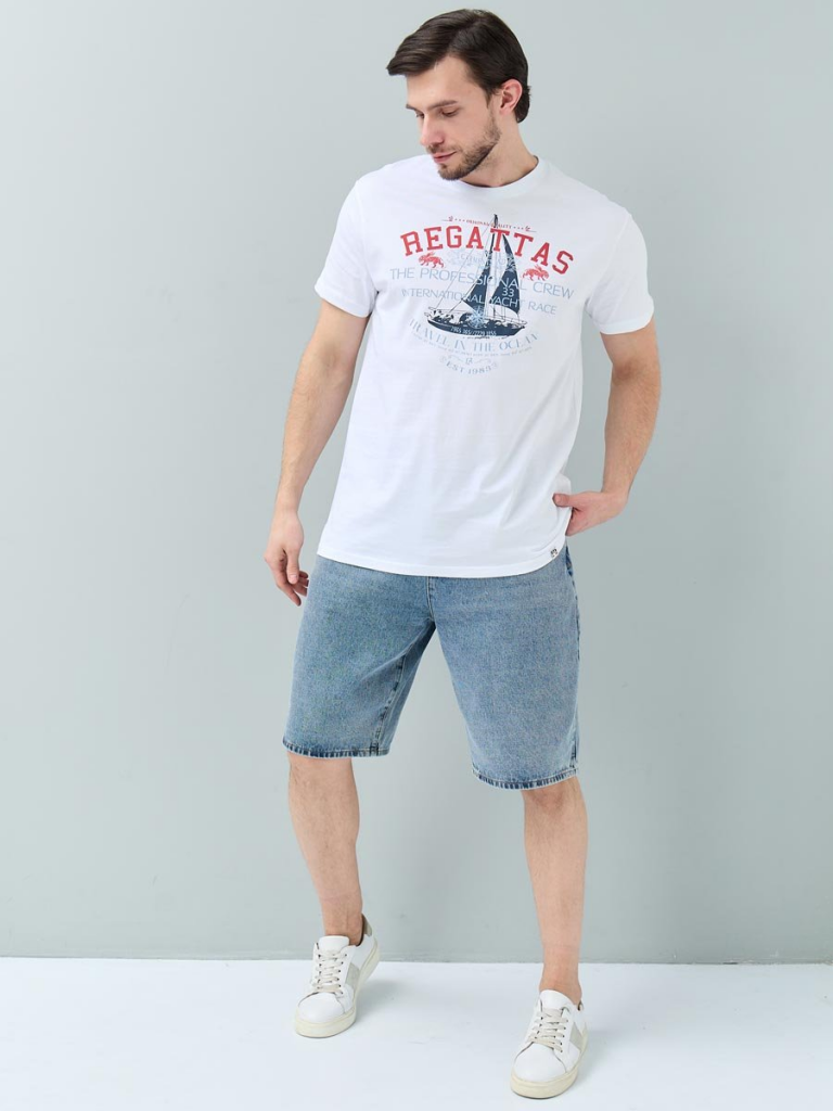 Мужская футболка F5, Regular fit (полуприлегающий силуэт), круглый вырез горловины, короткий рукав. Выполнена из классического трикотажного полотна.