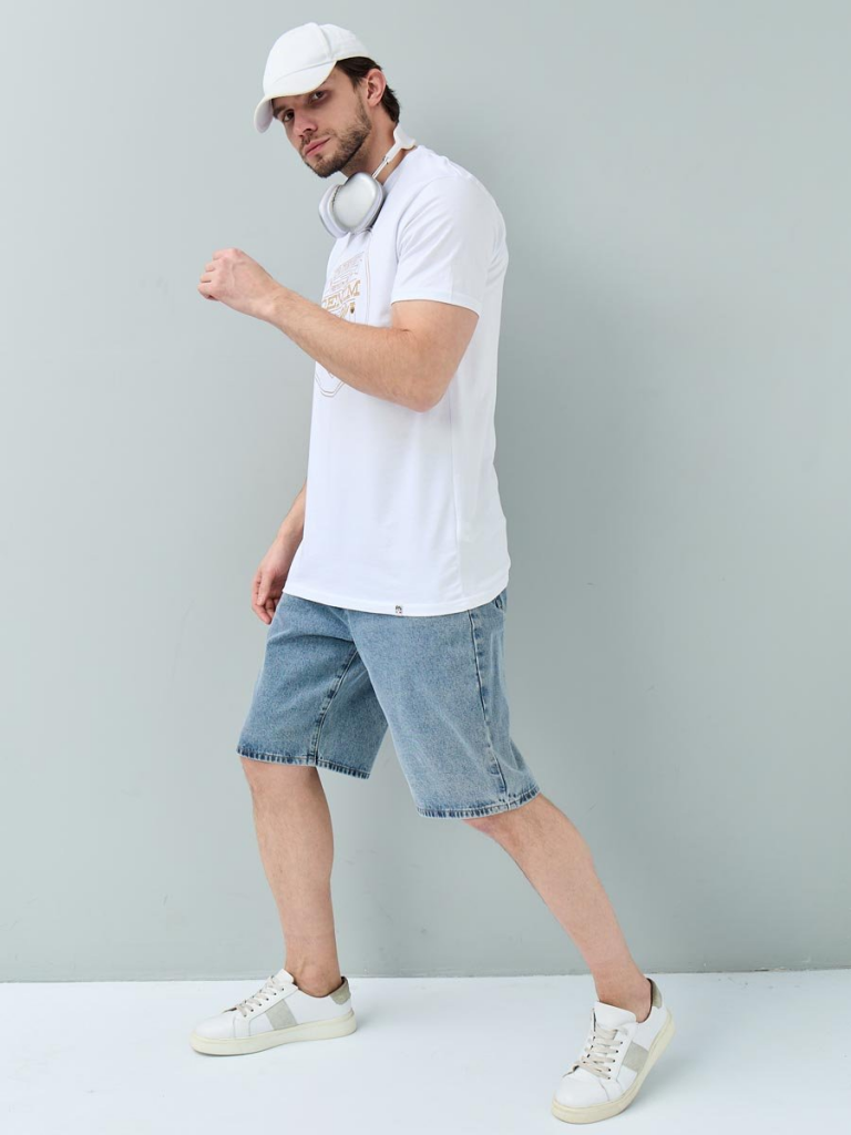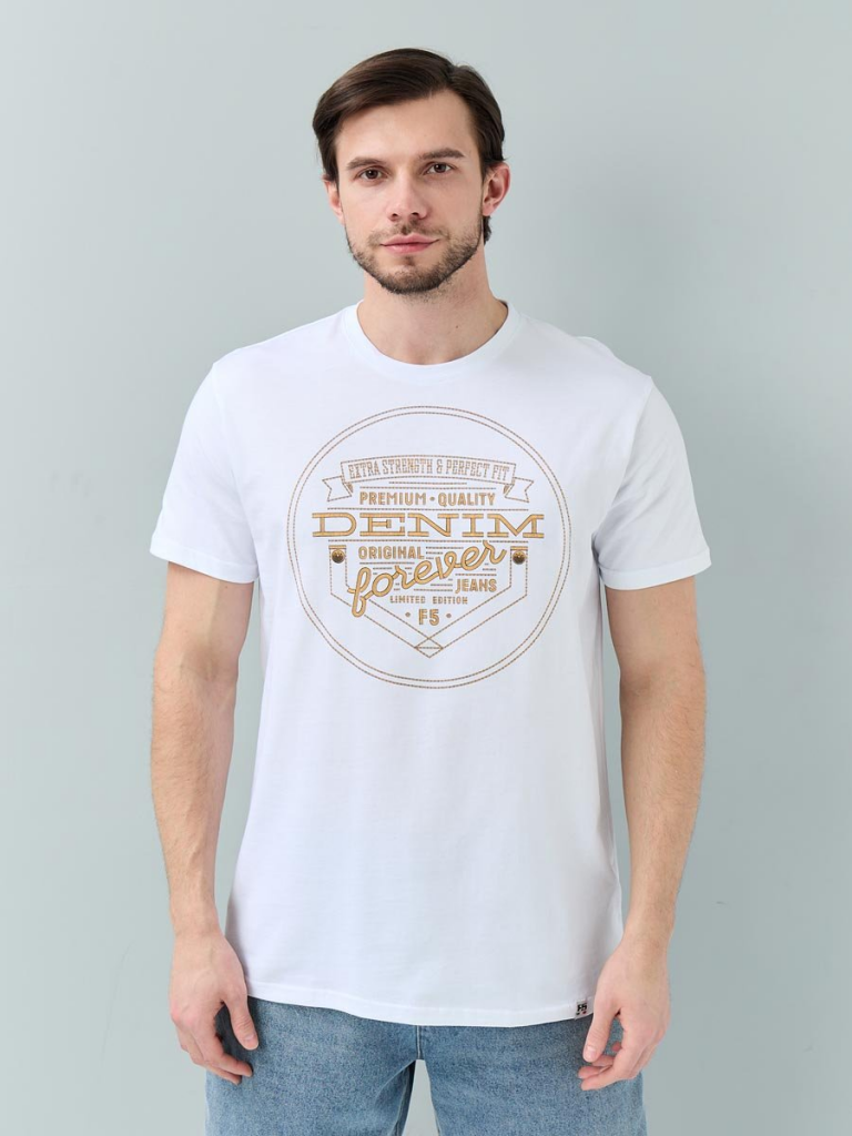 Мужская футболка F5, Regular fit (полуприлегающий силуэт), круглый вырез горловины, короткий рукав. Выполнена из классического трикотажного полотна.