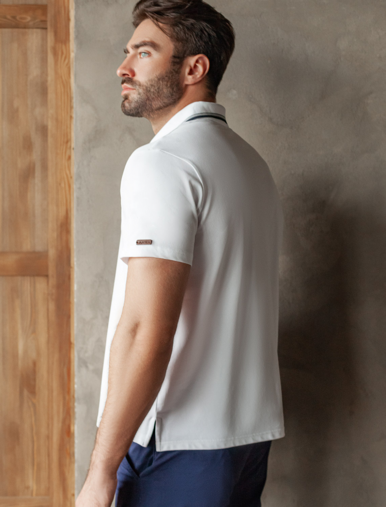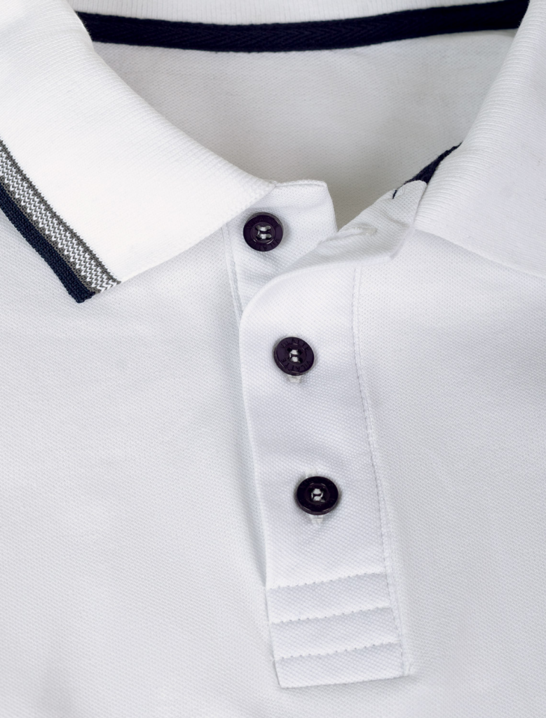 Футболка-поло выполнена из фактурного трикотажа. Модель с прямого кроя с небольшими разрезами по бокам дополнена вязаным воротником с контрастными пуговицами в тон тонкой полосы и вышитым логотипом бренда. Премиальный хлопковый трикотаж гарантирует комфорт и износостойкость. На рукаве брендированная нашивка из эко-кожи.