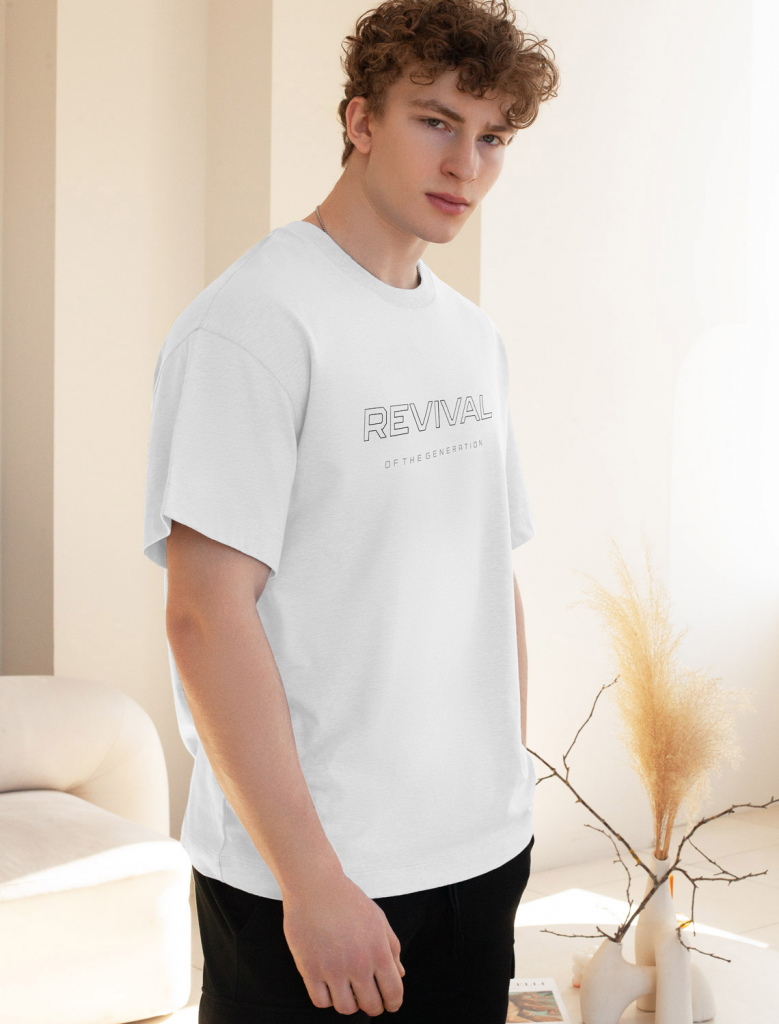 Перевод принта: Revival of the generation - возрождение поколения. Футболка свободного кроя выполнена из премиального хлопка. Авторский принт нанесен красками с устойчивым покрытием. Благодаря эластану, носить изделие очень комфортно, и оно сохранит свой безупречный вид в течение долгого времени. На рукаве нашивка из эко-кожи с логотипом бренда.