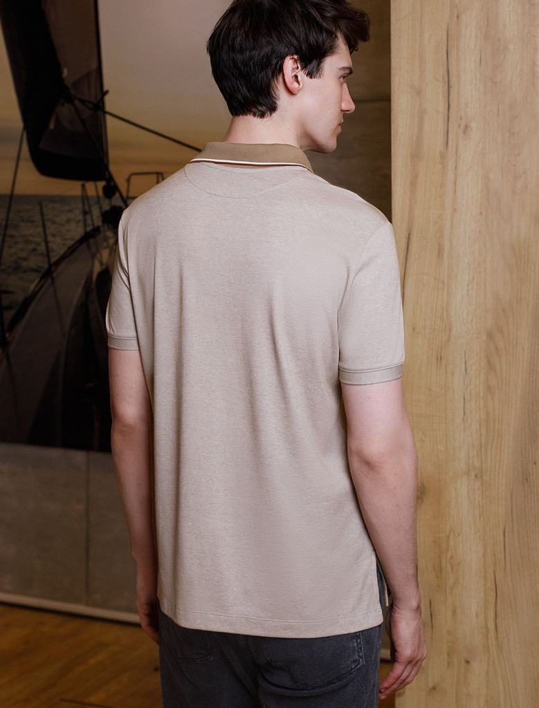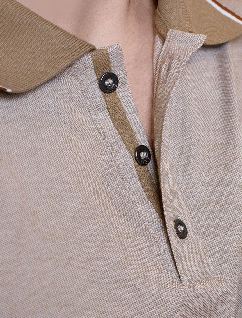 Стильная футболка поло с отложным воротником на пуговицах темно-бежевого цвета выполнена из полотна пике из двух оттенков нити, создающем эффект меланж. Мягкая и дышащая ткань обеспечивает комфорт в течение всего дня, позволяя коже дышать и поддерживать оптимальную воздухопроницаемость. Классический крой поло подойдет на разные комплекции фигуры, в том числе большие размеры, включая 58. Материал тянется, обеспечивает долговечность и сохраняет презентабельный внешний вид даже после многократных стирок.Контрастные линии на воротнике и рукавах добавляют образу стиль old money, а аккуратная нашивка на груди в виде логотипа бренда подчеркивает статусность футболки поло. По бокам аккуратные разрезы для свободы движений и дополнительного удобства.Повседневная футболка подходит для любых ситуаций — от деловых встреч до повседневных прогулок. Такая вещь станет универсальным решением для тех, кто ценит удобство и элегантность в одежде. Лаконичный дизайн легко сочетается с джинсами или брюками, что позволяет создавать разные образы.