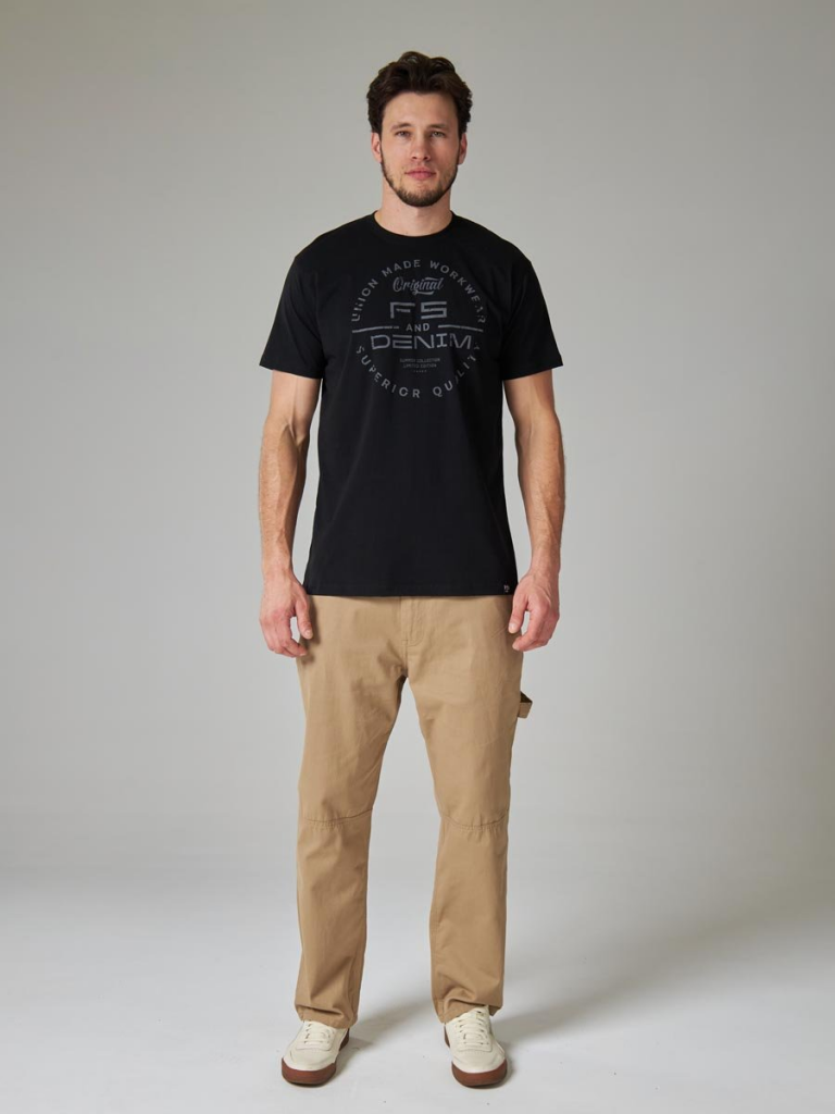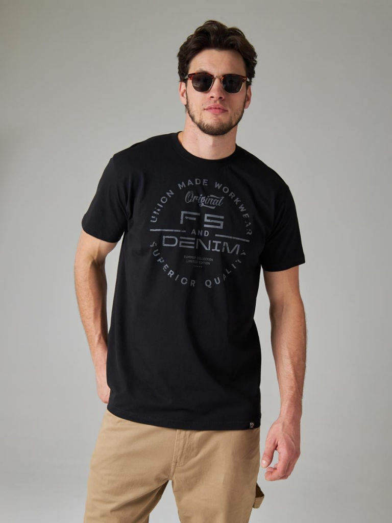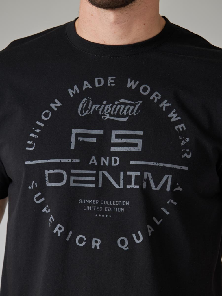 Мужская футболка F5, Regular fit (полуприлегающий силуэт), круглый вырез горловины, короткий рукав. Выполнена из классического трикотажного полотна.