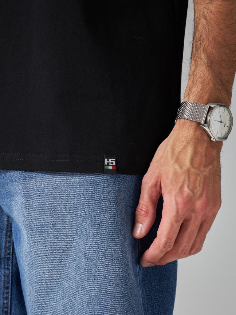 Мужская футболка F5, Regular fit (полуприлегающий силуэт), круглый вырез горловины, короткий рукав. Выполнена из классического трикотажного полотна.