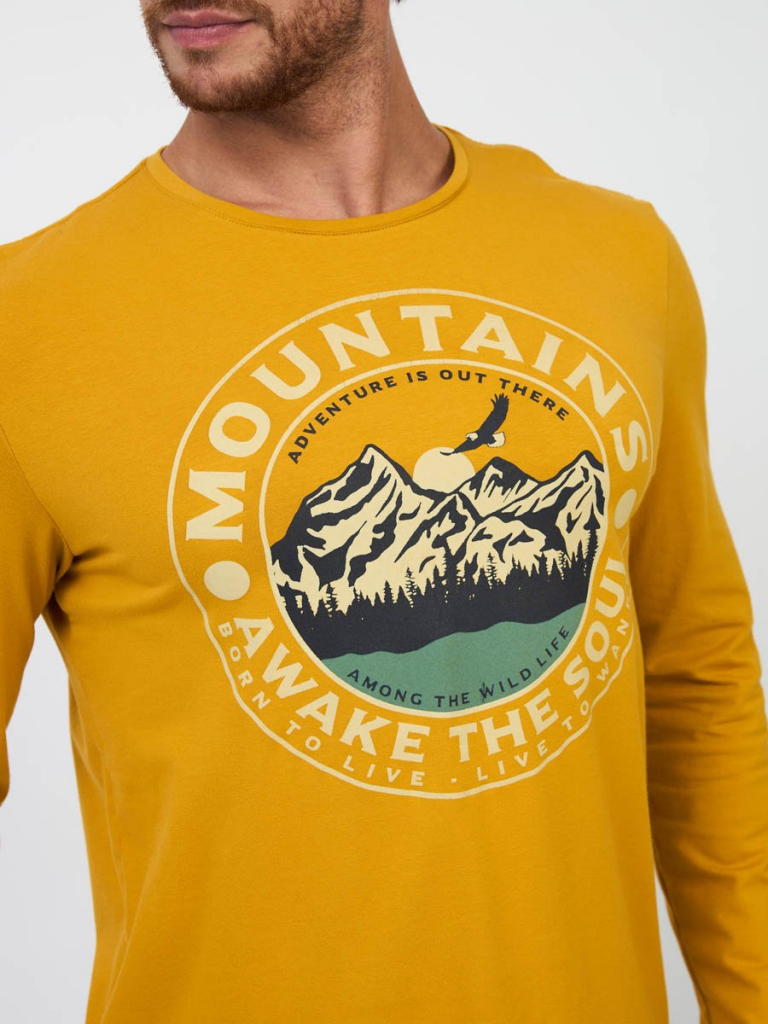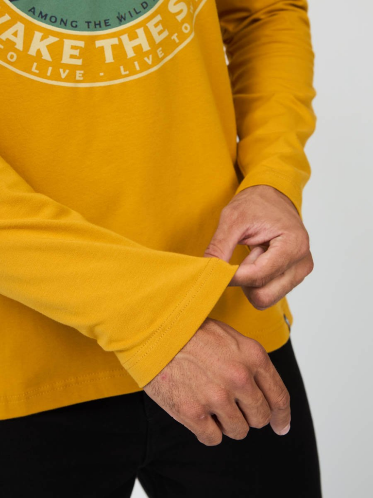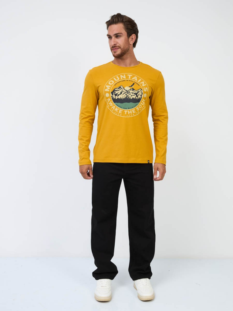 Мужская футболка F5, Regular fit (полуприлегающий силуэт), круглый вырез горловины, длинный рукав. Выполнена из классического трикотажного полотна.