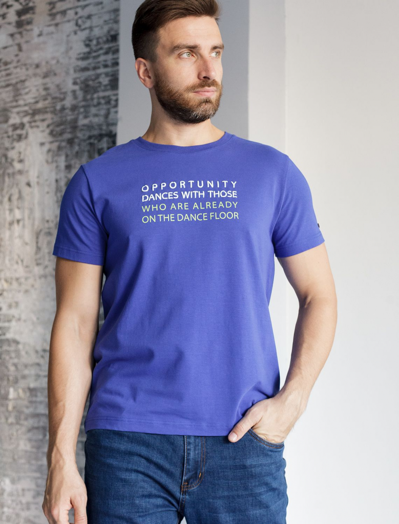 Футболка из хлопка. Для пошива модели с круглой горловиной использовали мягкое хлопковое полотно с характерной эластичной структурой. Принт в стиле минимализм выполнен красками с устойчивым покрытием. Самое высокое качество хлопковых волокон с добавлением эластана. Идеально держит форму и сохраняет внешний вид в течение долговременного использования.
