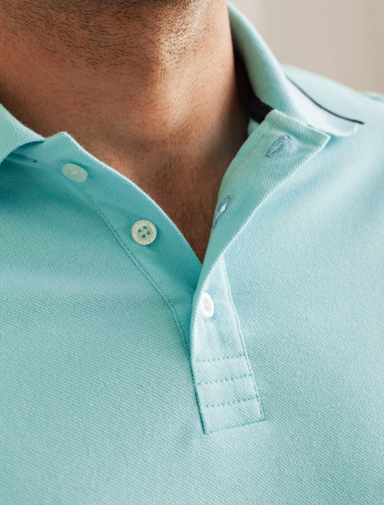 Футболка-поло выполнена из фактурного трикотажа. Модель с прямого кроя с небольшими разрезами по бокам дополнена вязаным воротником с контрастными пуговицами в тон тонкой полосы и вышитым логотипом бренда. Премиальный хлопковый трикотаж гарантирует комфорт и износостойкость. На рукаве брендированная нашивка из эко-кожи.