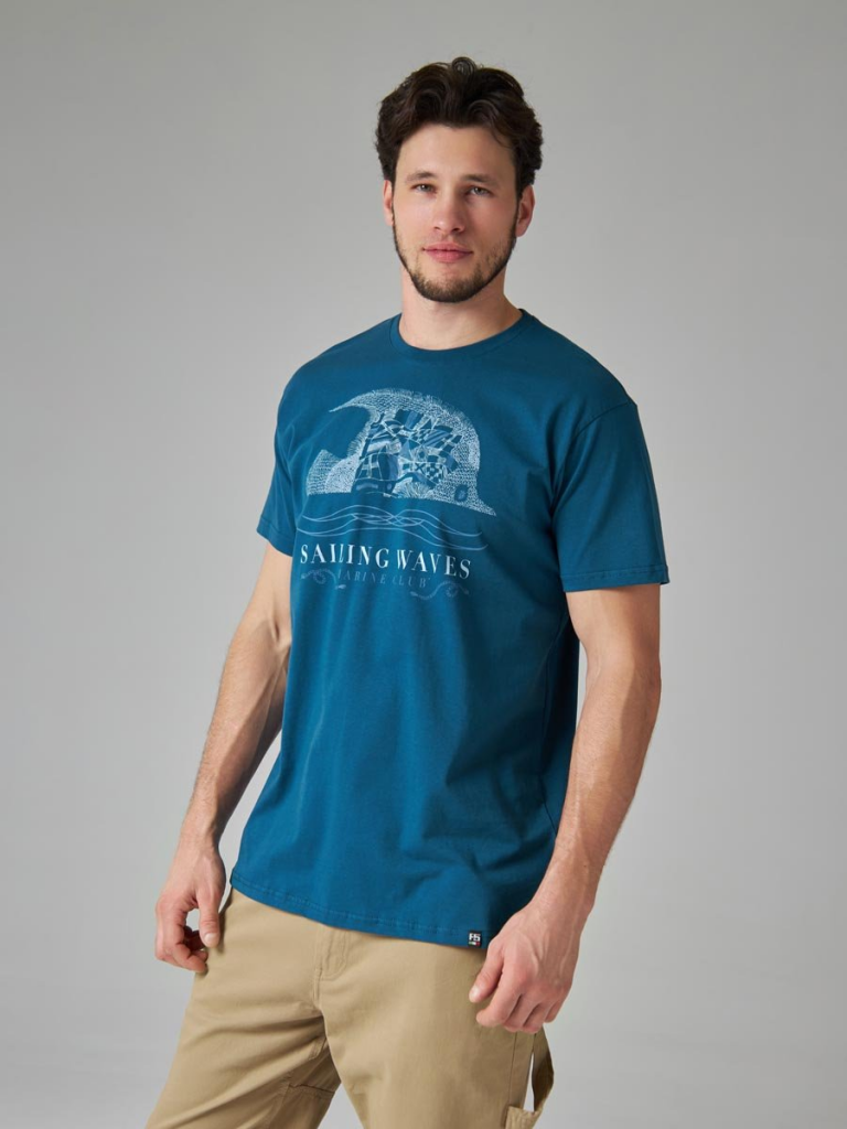 Мужская футболка F5, Regular fit (полуприлегающий силуэт), круглый вырез горловины, короткий рукав. Выполнена из классического трикотажного полотна.