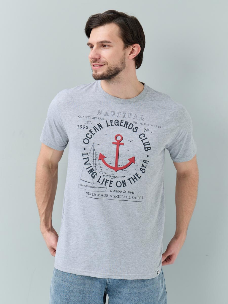 Мужская футболка F5, Regular fit (полуприлегающий силуэт), круглый вырез горловины, короткий рукав. Выполнена из классического трикотажного полотна.