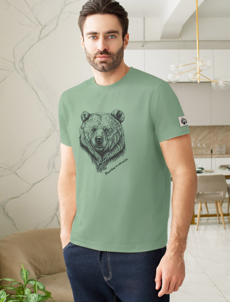Футболка выполнена из премиального хлопка с эластаном. Авторский принт нанесен фактурными красками с устойчивым покрытием. Изделие комфортно сидит по фигуре, не сковывая движений. За счет среднего объема, хорошо подойдет как первый слой под пиджак, кардиган или бомбер. На рукаве нашивка из эко-кожи с логотипом бренда.