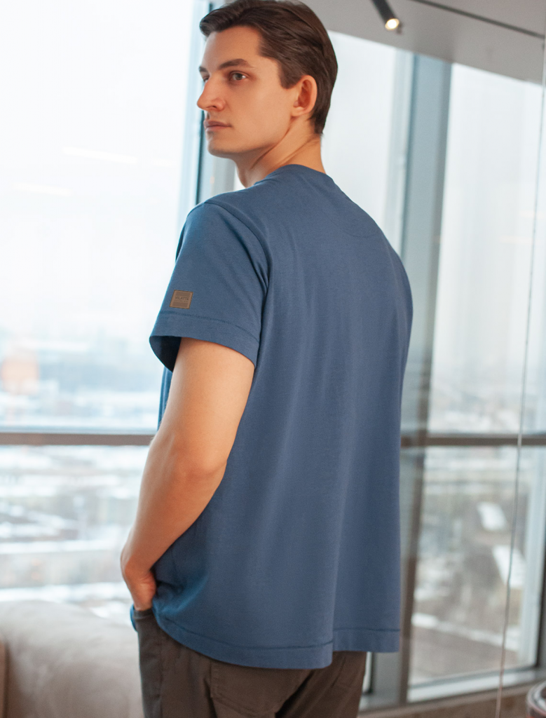 Футболка выполнена из фактурного полотна из 100% хлопка. Базовая однотонная модель, без труда впишется в любой гардероб. Ткань имеет характерный рисунок черточки за счет сочетания разных волокон хлопка 140-150 г. Хорошо держит форму и поддерживает комфортный микроклимат в течении дня. На рукаве нашивка из эко-кожи с логотипом бренда.
