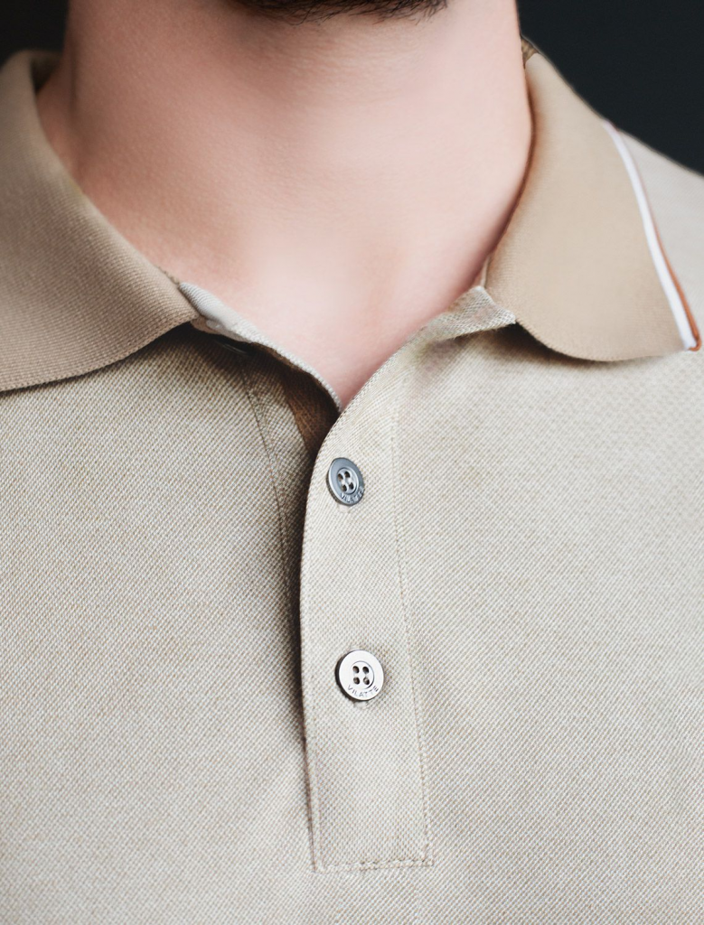 Стильная футболка поло с отложным воротником на пуговицах темно-бежевого цвета выполнена из полотна пике из двух оттенков нити, создающем эффект меланж. Мягкая и дышащая ткань обеспечивает комфорт в течение всего дня, позволяя коже дышать и поддерживать оптимальную воздухопроницаемость. Классический крой поло подойдет на разные комплекции фигуры, в том числе большие размеры, включая 58. Материал тянется, обеспечивает долговечность и сохраняет презентабельный внешний вид даже после многократных стирок.Контрастные линии на воротнике и рукавах добавляют образу стиль old money, а аккуратная нашивка на груди в виде логотипа бренда подчеркивает статусность футболки поло. По бокам аккуратные разрезы для свободы движений и дополнительного удобства.Повседневная футболка подходит для любых ситуаций — от деловых встреч до повседневных прогулок. Такая вещь станет универсальным решением для тех, кто ценит удобство и элегантность в одежде. Лаконичный дизайн легко сочетается с джинсами или брюками, что позволяет создавать