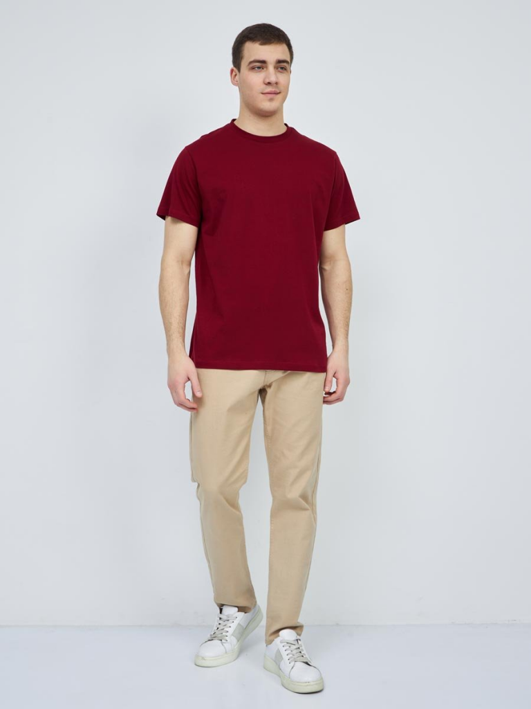 Мужская футболка F5, Comfort fit (свободный силуэт), круглый вырез горловины, короткий рукав. Специальная укрупненная размерная сетка с двойным шагом между размерами. Эта сетка сделана для того чтобы оставить тоже количество размеров футболки от М до XXXL, но охватить размеры с 48 по 64, вместо традиционного интервала размеров с 48 по 56. Выполнена из классического трикотажного полотна.