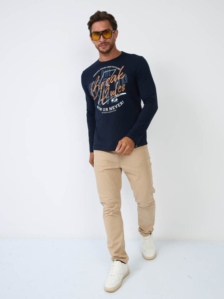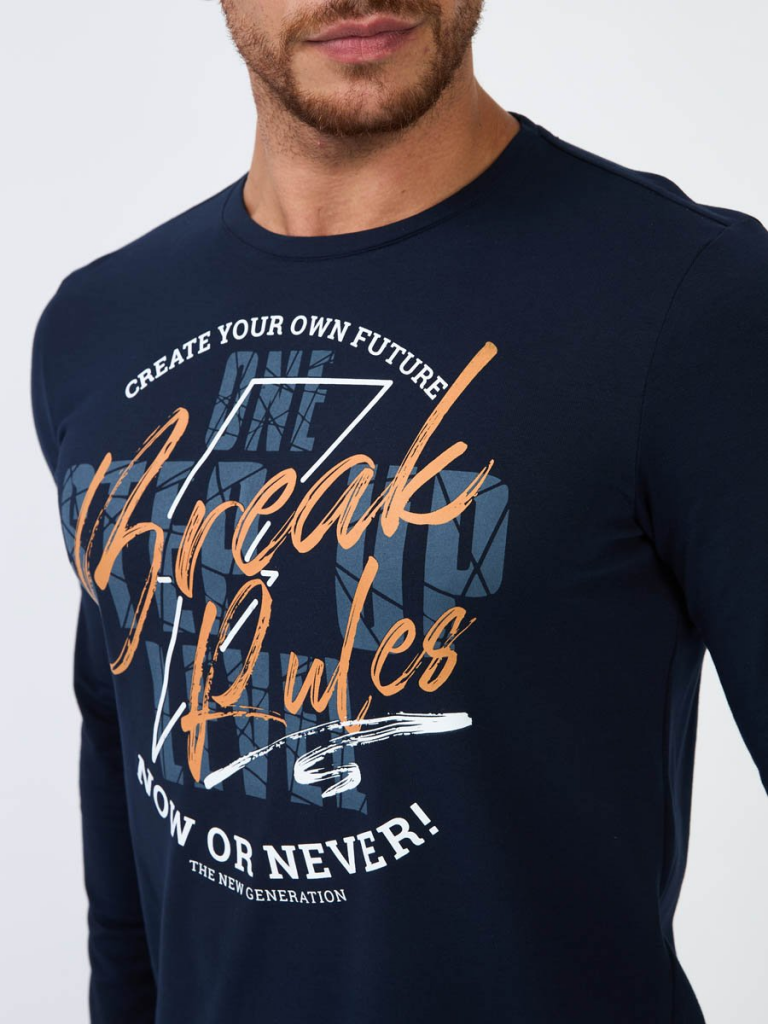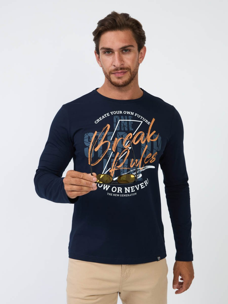 Мужская футболка F5, Regular fit (полуприлегающий силуэт), круглый вырез горловины, длинный рукав. Выполнена из классического трикотажного полотна.