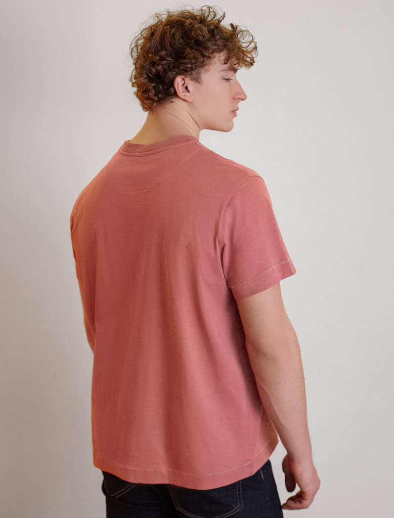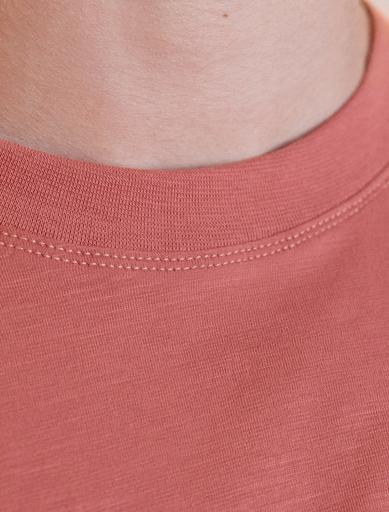 Футболка выполнена из фактурного полотна из 100% хлопка. Базовая однотонная модель, без труда впишется в любой гардероб. Ткань имеет характерный рисунок черточки за счет сочетания разных волокон хлопка 140-150 г. Хорошо держит форму и поддерживает комфортный микроклимат в течении дня. На рукаве нашивка из эко-кожи с логотипом бренда.