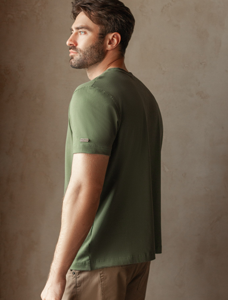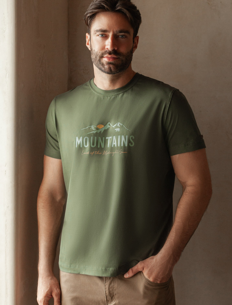 Футболка выполнена из премиального хлопка с эластаном. Авторский принт нанесен фактурными красками с устойчивым покрытием. Изделие комфортно сидит по фигуре, не сковывая движений. За счет среднего объема, хорошо подойдет как первый слой под пиджак, кардиган или бомбер. На рукаве нашивка из эко-кожи с логотипом бренда.