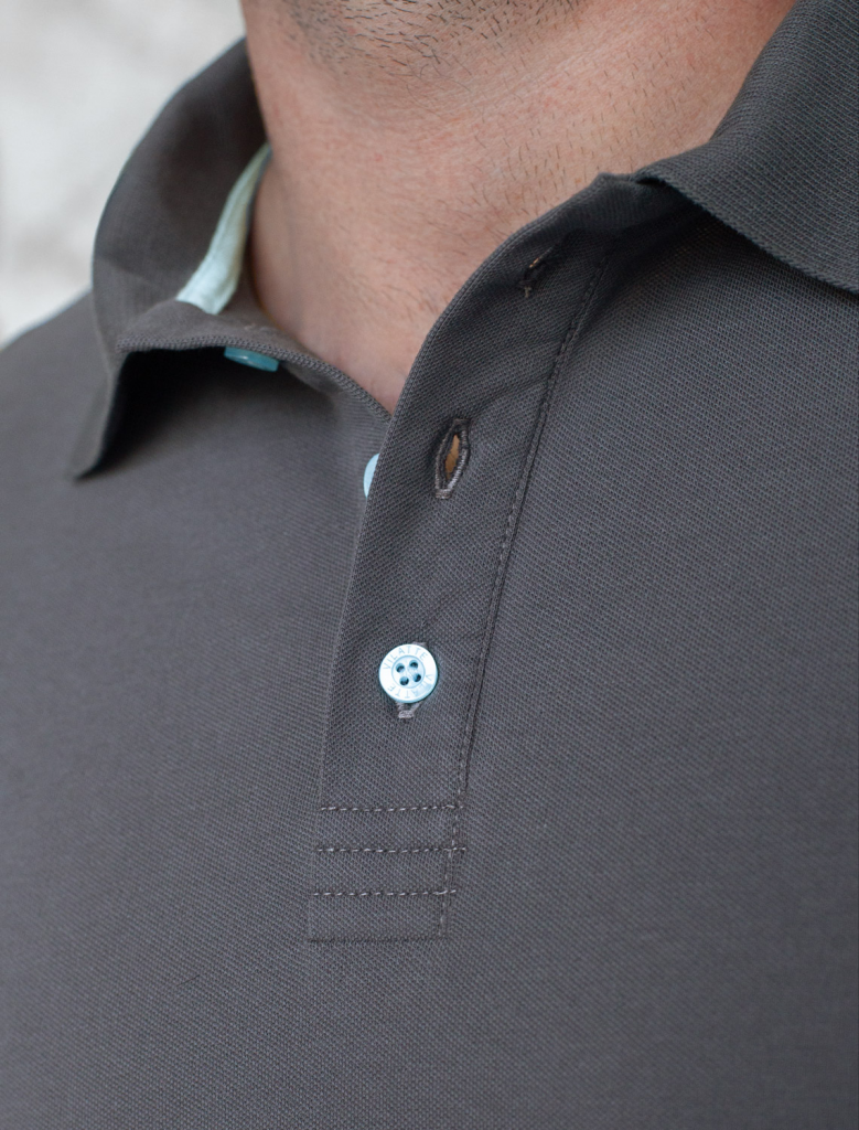 Футболка-поло выполнена из фактурного трикотажа. Модель с прямого кроя с небольшими разрезами по бокам дополнена вязаным воротником с контрастными пуговицами в тон тонкой полосы и вышитым логотипом бренда. Премиальный хлопковый трикотаж гарантирует комфорт и износостойкость. На рукаве брендированная нашивка из эко-кожи.