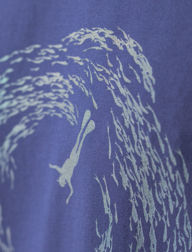 Футболка выполнена из премиального хлопка с эластаном. Авторский принт нанесен фактурными красками с устойчивым покрытием. Изделие комфортно сидит по фигуре, не сковывая движений. За счет среднего объема, хорошо подойдет как первый слой под пиджак, кардиган или бомбер. На рукаве нашивка из эко-кожи с логотипом бренда.