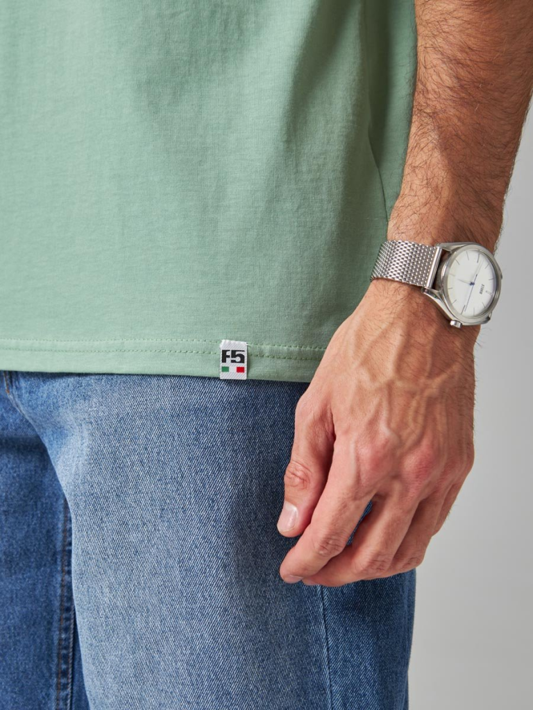 Мужская футболка F5, Regular fit (полуприлегающий силуэт), круглый вырез горловины, короткий рукав. Выполнена из классического трикотажного полотна.
