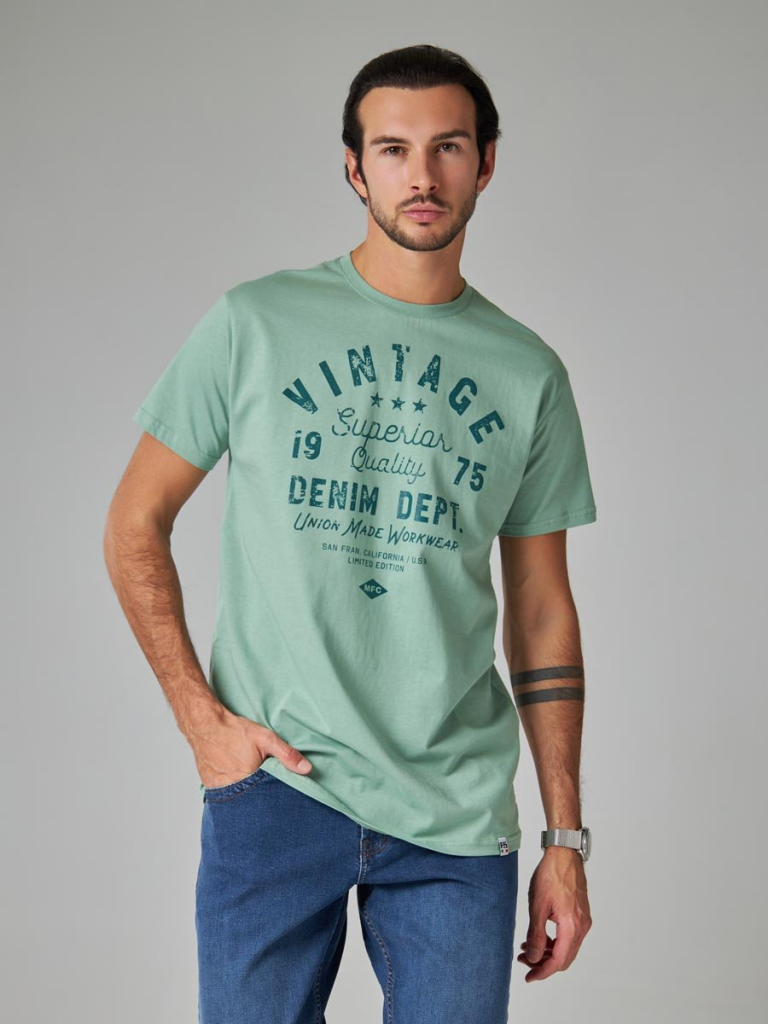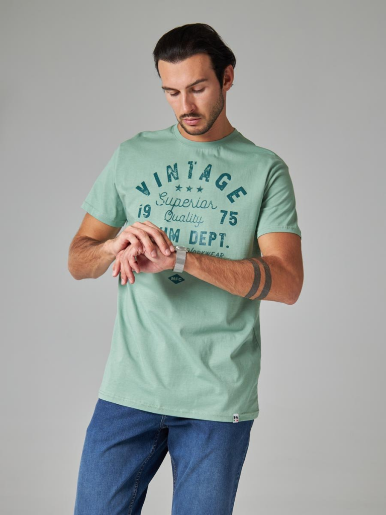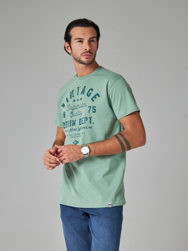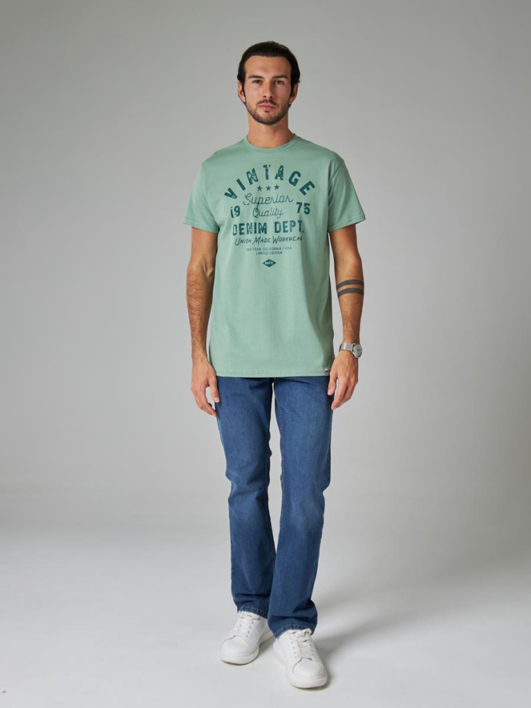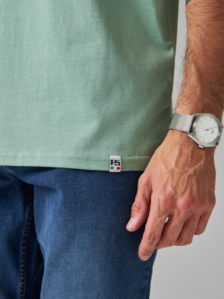 Мужская футболка F5, Regular fit (полуприлегающий силуэт), круглый вырез горловины, короткий рукав. Выполнена из классического трикотажного полотна.