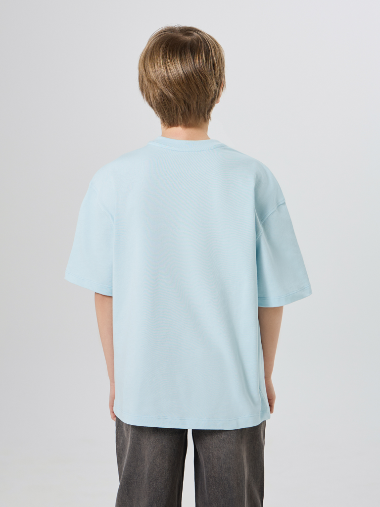 Модель прямого силуэта выполнена из лёгкого и дышащего хлопка. Этот материал невероятно мягкий, приятный к коже и обеспечивает идеальный воздухообмен в тёплую погоду. Свободный крой и длина до середины бедра дарят полную свободу движений для игр и активностей. Круглая горловина, аккуратно окантованная эластичной рибаной, отлично держит форму, не растягиваясь. Все швы выполнены качественно и остаются гладкими.