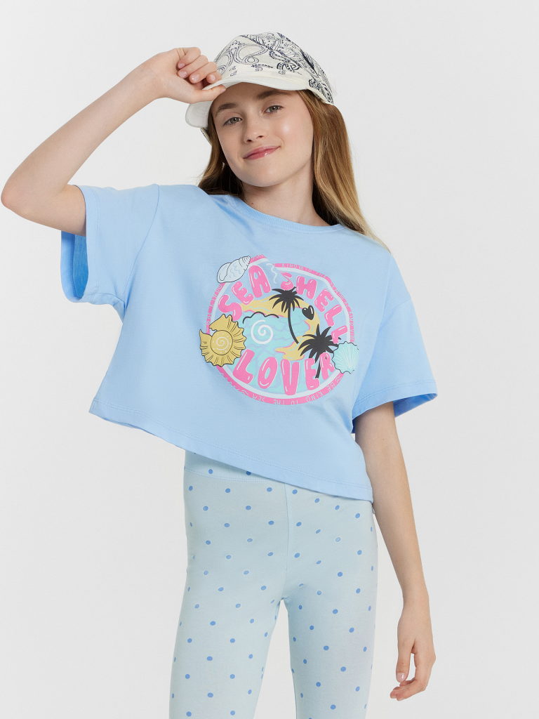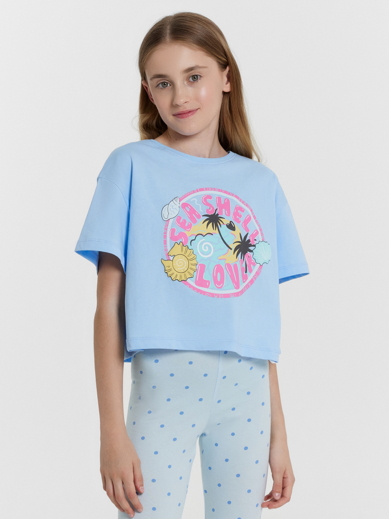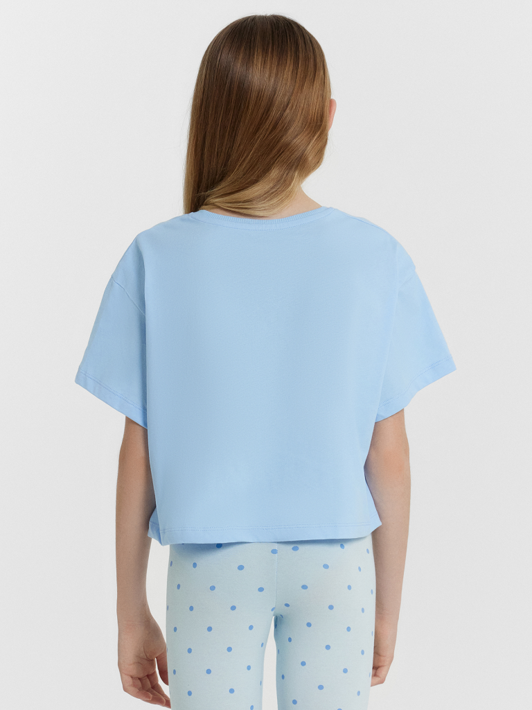 Укороченная футболка свободного силуэта из трикотажной кулирки. Пройма спущена, что дарит свободу движений. Рукава короткие. Горловина круглой формы. Идеально для шортиков или брюк с высокой посадкой!