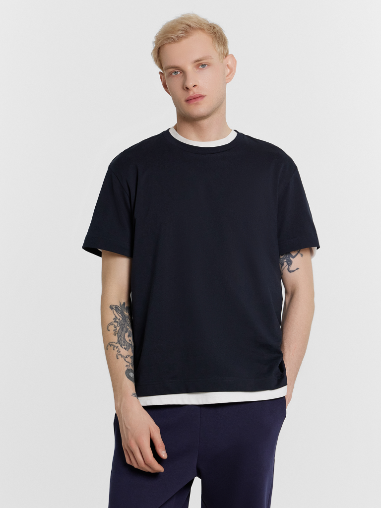 Однотонная мужская футболка — базовый элемент вашего гардероба, который обеспечит вам комфорт и стиль в любой ситуации. Модель прямого силуэта с круглой горловиной и короткими рукавами создаёт классический и удобный образ. Изделие выполнено из хлопковой кулирки, обладающей особой мягкостью и природной воздухопроницаемостью. Натуральный материал также хорошо сохраняет форму и цвет, делая эту футболку долговечной и практичной. Нижние срезы и рукавов обработаны швом вподгибку, что придаёт изделию аккуратный и завершённый вид. Эта футболка станет незаменимой частью вашего гардероба, подходящей для повседневной носки и различных мероприятий.