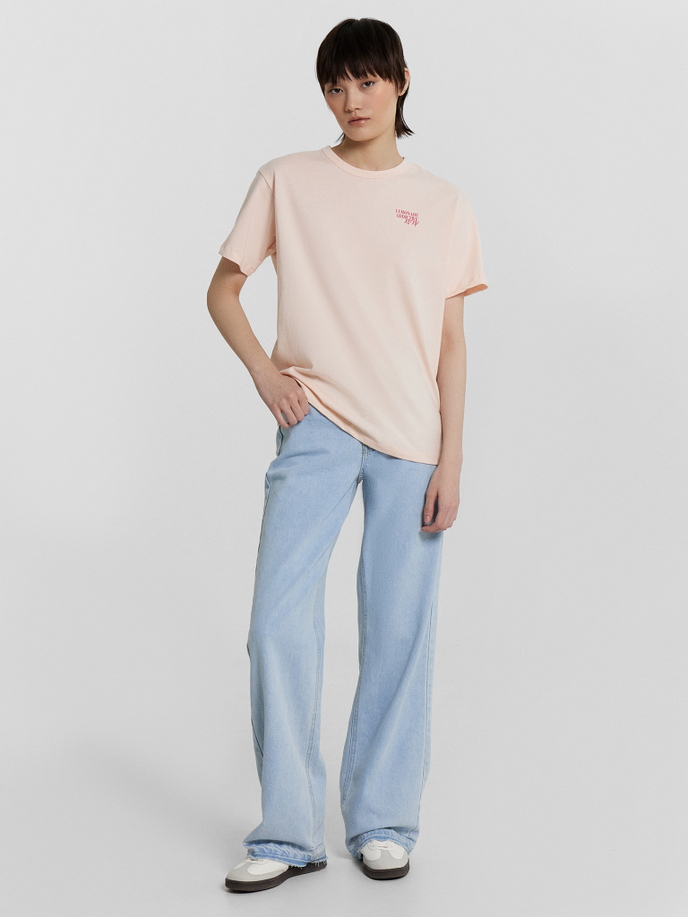 Женская футболка прямого свободного кроя станет идеальным дополнением вашего гардероба. Горловина круглой формы и короткие рукава обеспечивают классический и комфортный образ. Нижний срез модели обработан швом вподгибку, что придает изделию аккуратный вид. Изделие выполнено из кулирки — материала, отличающегося отличной воздухопроницаемостью и мягкостью, что делает его идеальным для повседневной носки. Кулирка отлично сохраняет форму, не растягивается и не теряет цвет после стирки при правильном уходе.