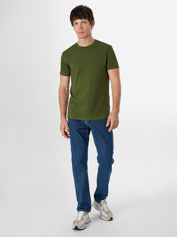Классический круглый вырез и короткие рукава делают эту зеленую футболку идеальным выбором для повседневной носки. Эта базовая футболка легко сочетается с джинсами, шортами или брюками, создавая лаконичные и стильные комплекты на любой случай. Если вы ищете, где купить мужскую базовую футболку, эта модель — отличное соотношение качества и стиля.