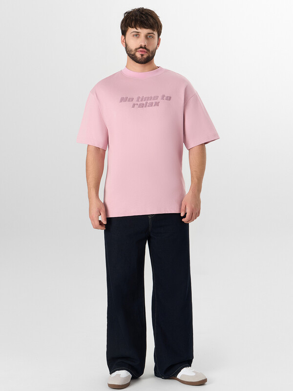 Синяя мужская футболка с надписью «Good times» («Хорошие времена») создана для тех, кто ценит стиль и комфорт. Модель оверсайз со спущенной линией плеча и короткими рукавами легко сочетается с любым низом.