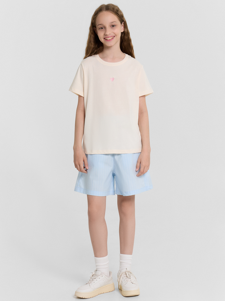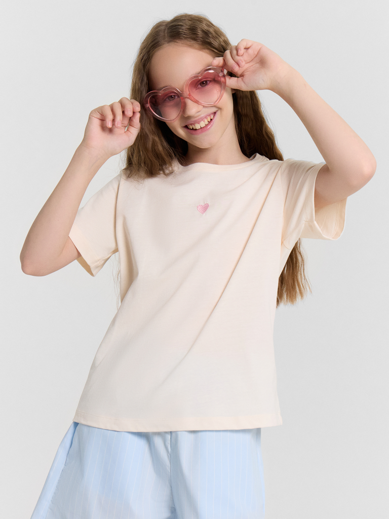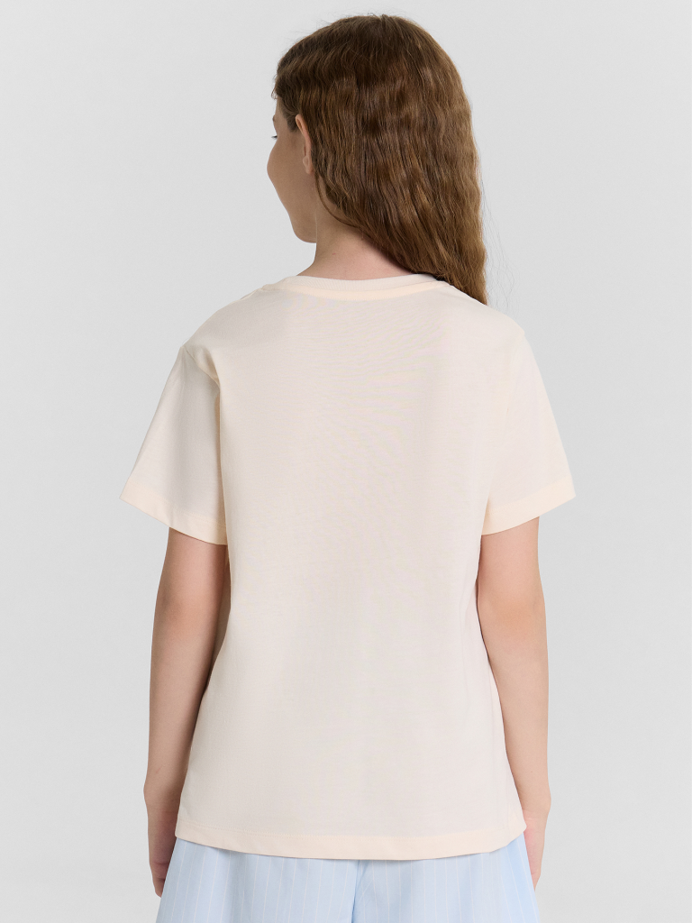 Модная футболка для девочек, выполненная из хлопковой трикотажной кулирки. Силуэт прямой. Перед и спинка без швов и рельефов. Рукава короткие, вырез классический – круглый, не глубокий. Стильная футболка с ярким дизайном!