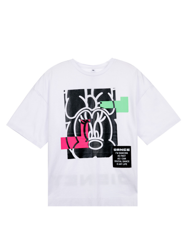 Футболка с персонажем Disney из качественного и приятного на ощупь трикотажа джерси. Силуэт oversize. Высокое содержание хлопка 95%. Благодаря наличию эластана в составе ткани изделие проще в уходе и держит форму. Принт сохраняет первоначальный вид даже после многочисленных стирок.