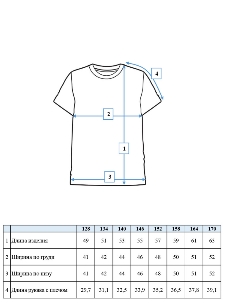| Рост, см | 98 | 104 | 110 | 116 | 122 | 128 | 134 | 140 | 146 | 152 | 158 | 164 | 170 |
