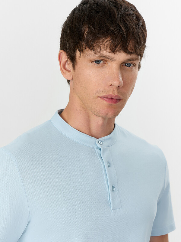 Короткие рукава и лаконичный дизайн делают эту футболку поло практичным решением для работы, учебы, прогулок или встреч с друзьями. Универсальный голубой цвет легко сочетается с классическими брюками, джинсами или шортами. Если вы хотите купить футболку поло мужскую с коротким рукавом, которая объединяет натуральные материалы, продуманный крой и современную эстетику, эта модель станет отличным выбором.