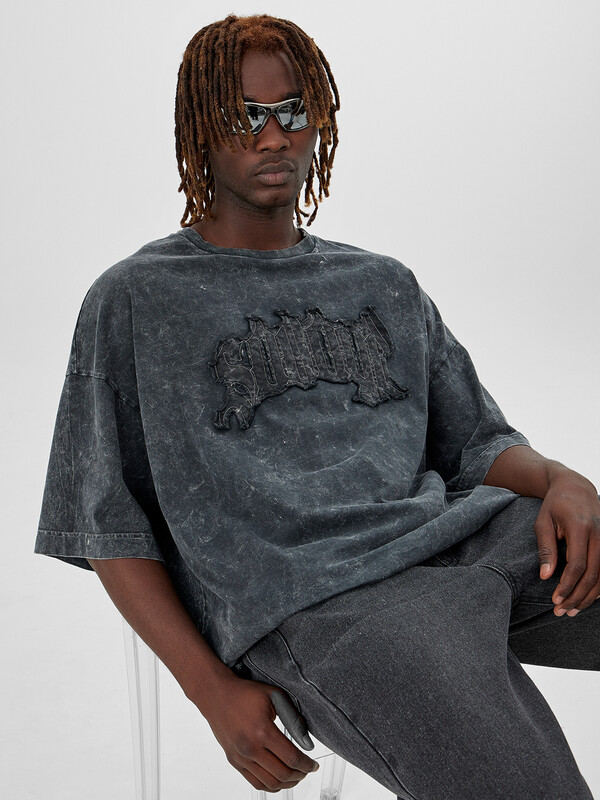 Модель выполнена из плотного хлопка, который пропускает воздух, обеспечивая комфорт даже в любую погоду. Прямой силуэт со спущенным плечом и круглой горловиной с отделкой из рибаны обеспечивает свободное прилегание. Если вы хотите купить мужскую футболку, которая сочетает трендовый дизайн, качественные материалы и универсальность, эта модель станет отличным выбором. Футболка мужская их хлопка с эффектом эйсид подойдет для прогулок, встреч с друзьями или casual-образов, легко комбинируясь с джинсами, шортами или спортивными брюками.