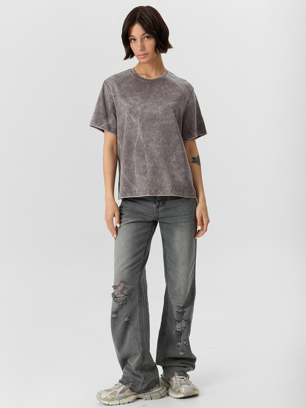 Джемпер прямого силуэта. Горловина круглая, обработана обтачкой из основного полотна. Шов