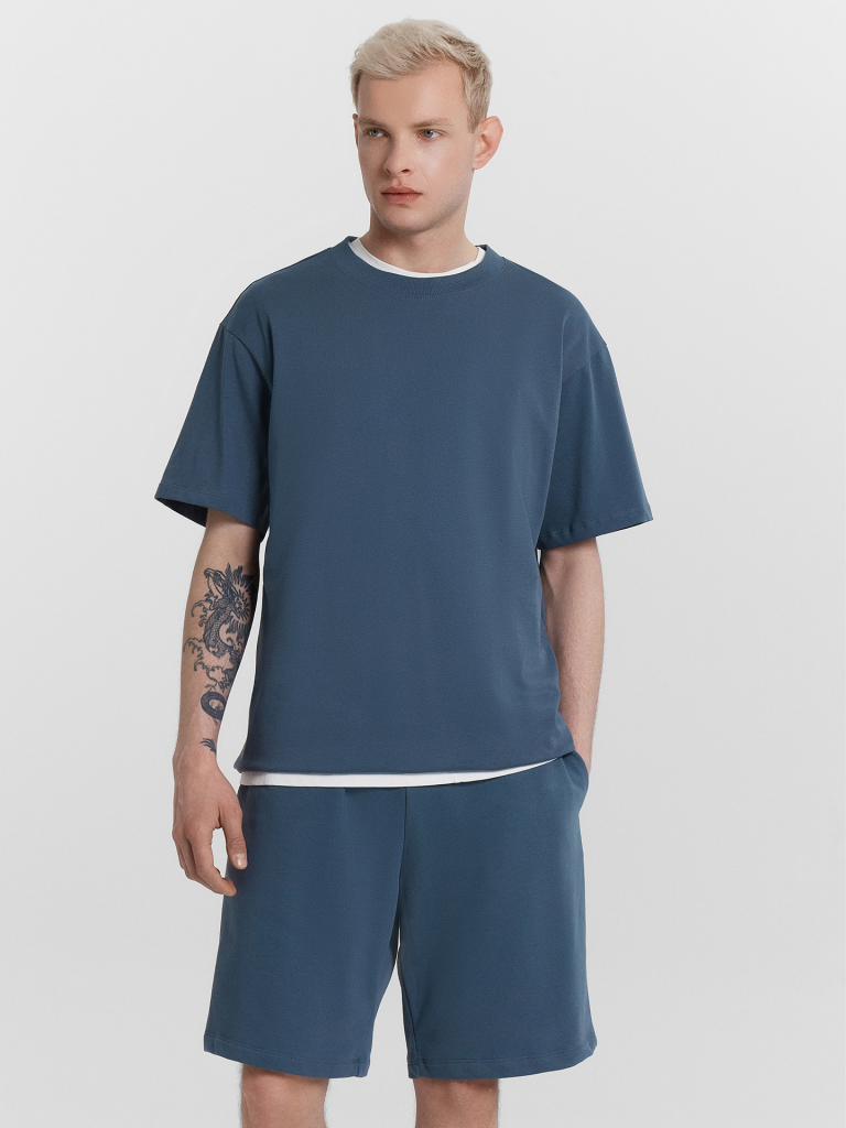 Эта мужская футболка из высококачественного хлопка — универсальный элемент гардероба, который сочетает комфорт, стиль и практичность. Круглая горловина создает классический и аккуратный силуэт, а спущенная линия плеча и углубленная пройма гарантируют свободу движений, обеспечивая расслабленный и современный стиль. Широкие рукава длиной до локтя делают модель удобной для любого сезона, позволяя носить ее как самостоятельный элемент или комбинировать с верхними слоями одежды. Базовый дизайн делает футболку оптимальной для повседневной носки — ее можно надеть на работу, учебу или прогулку, если ваш образ не требует строгого дресс-кода. Материал — натуральный хлопок — обладает высокой воздухопроницаемостью, гипоаллергенностью и мягкостью, что обеспечивает комфорт при носке. Он отлично пропускает воздух, позволяя коже дышать, и сохраняет свежесть на протяжении всего дня. Футболка представлена в широкой размерной сетке и разнообразных расцветках, что позволяет подобрать вариант, соответствующий вашему стилю. Прекрасный выбор для тех, кто ценит удобство, качество и универсальность!